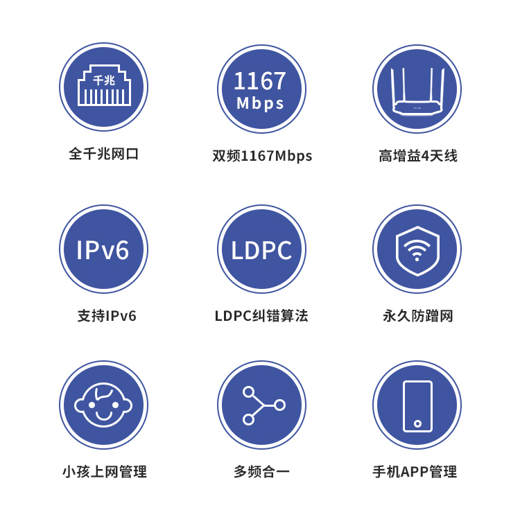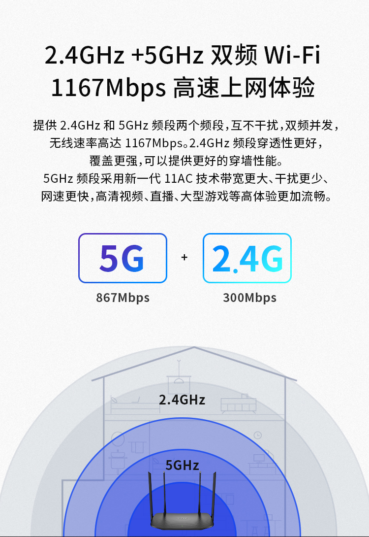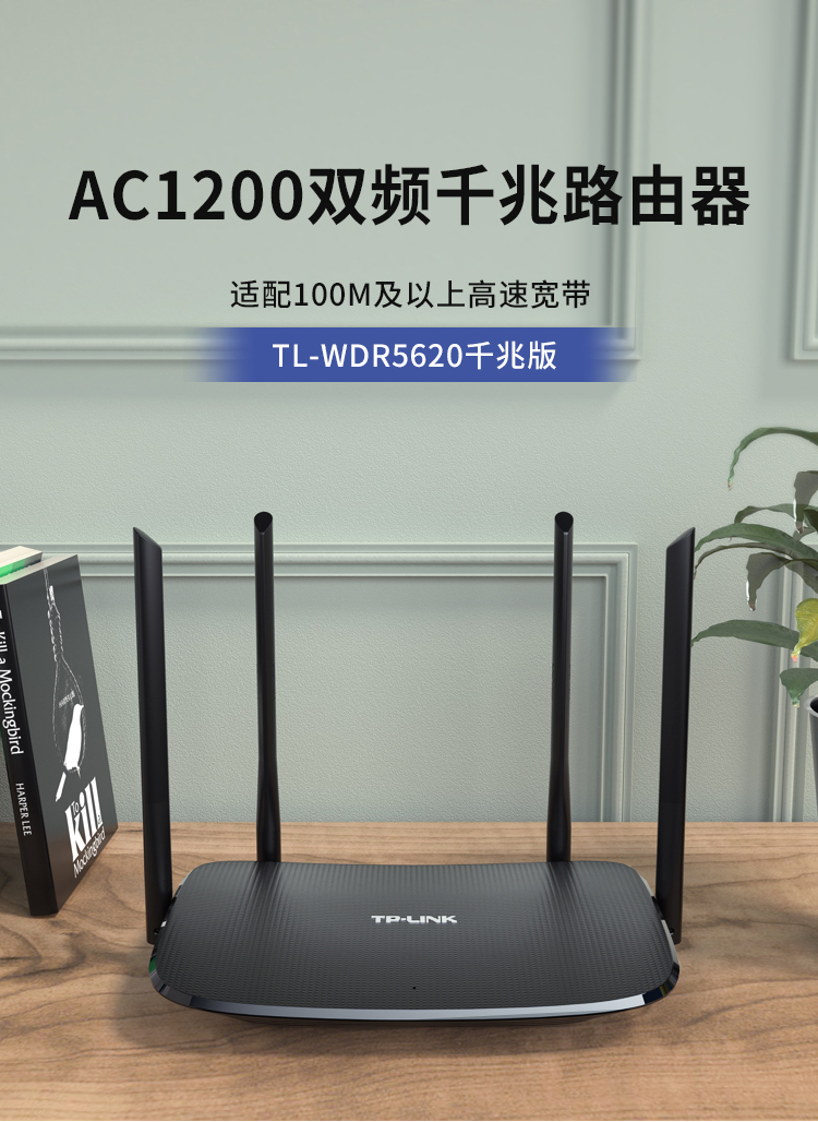 TP-LINK千兆路由器 AC1200无线家用 5G双频WiFi WDR5620千兆 高速路由穿墙 IPv6 内配千兆网线 光纤适用